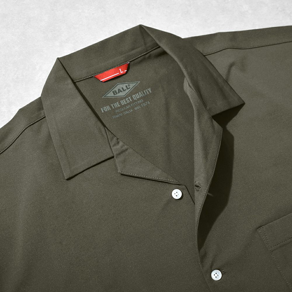 首元の開いたオープンカラー仕様ですっきりとしたさわやかな印象の半袖シャツ。