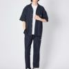 通気性がいい、さわやかな着心地。 ドット格子メッシュ オープンカラーシャツ&パンツ 上下セット