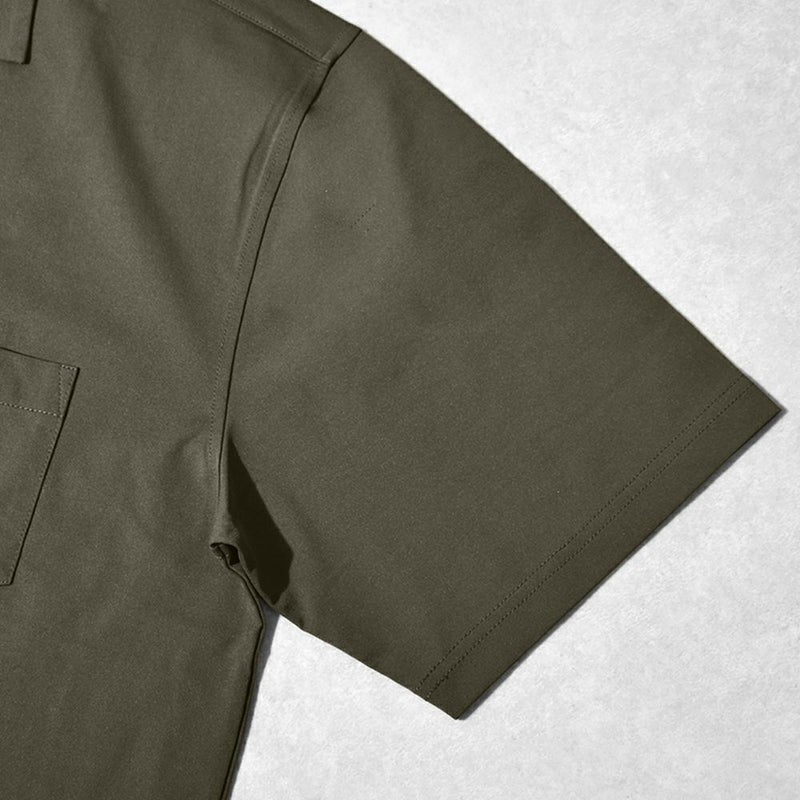 首元の開いたオープンカラー仕様ですっきりとした