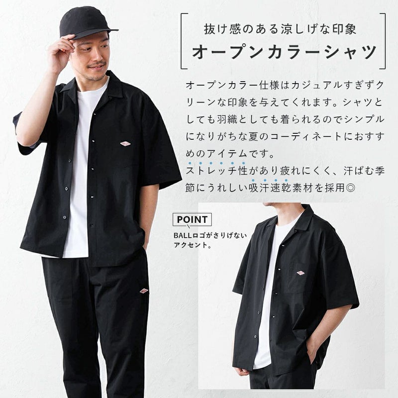 首元の開いたオープンカラー仕様ですっきりとしたさわやかな印象の半袖シャツ。