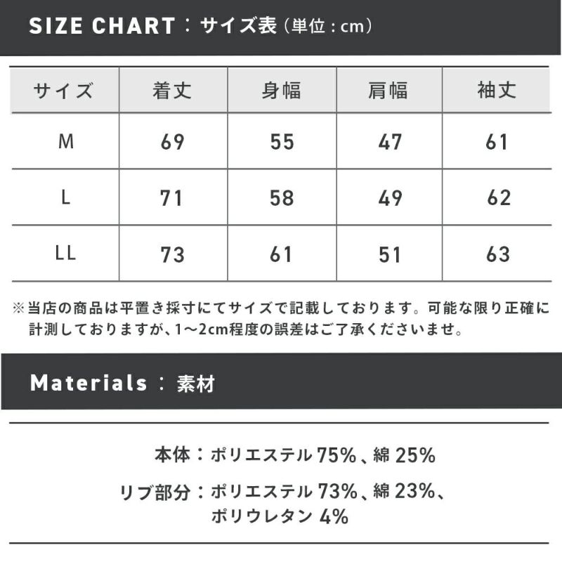 リブ部分:ポリエステル73%/ 綿23%/ ポリウレタン4%