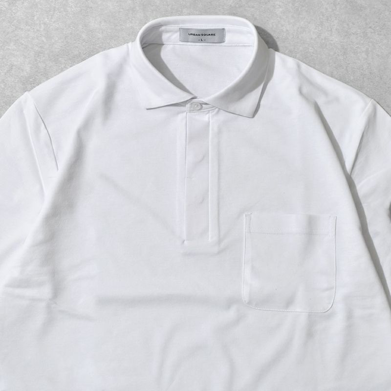 小さめの襟に襟の開きが広い、首回りをすっきりと見せてくれるカッタウェイポロシャツ。