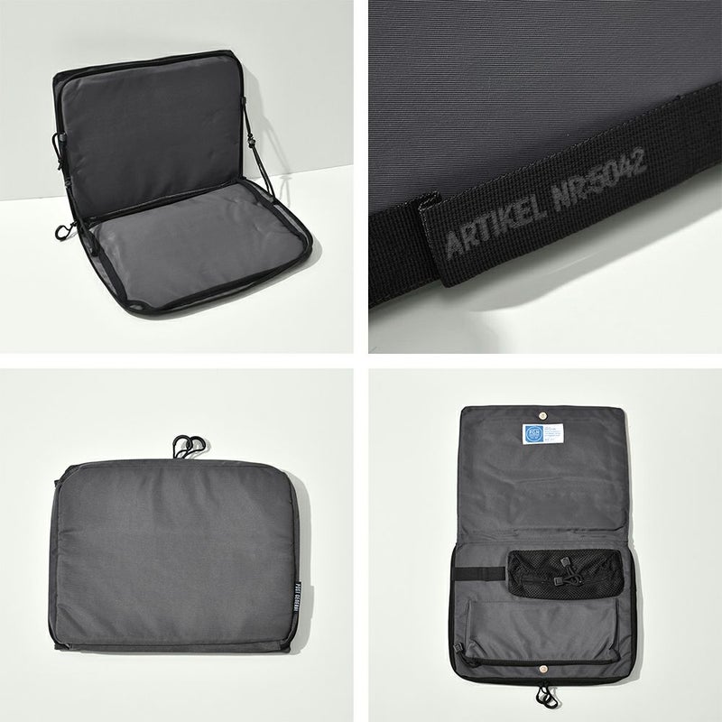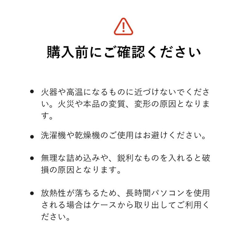 -手持ちしやすいハンドルベルト付き- ノートPCを入れたままさっと使える持ち運びに便利なラップトップバッグです。 小物など細かいものの整理・収納にも便利なポケット付き◎ 15インチまでのノートPC・タブレットに対応。 また、ガジェット類の持ち運び以外にも A4サイズの書類や手帳などの ドキュメントケースとしてもお使いいただけます。 シンプルなアウトドアテイストで、男女問わずお使いいただけます。