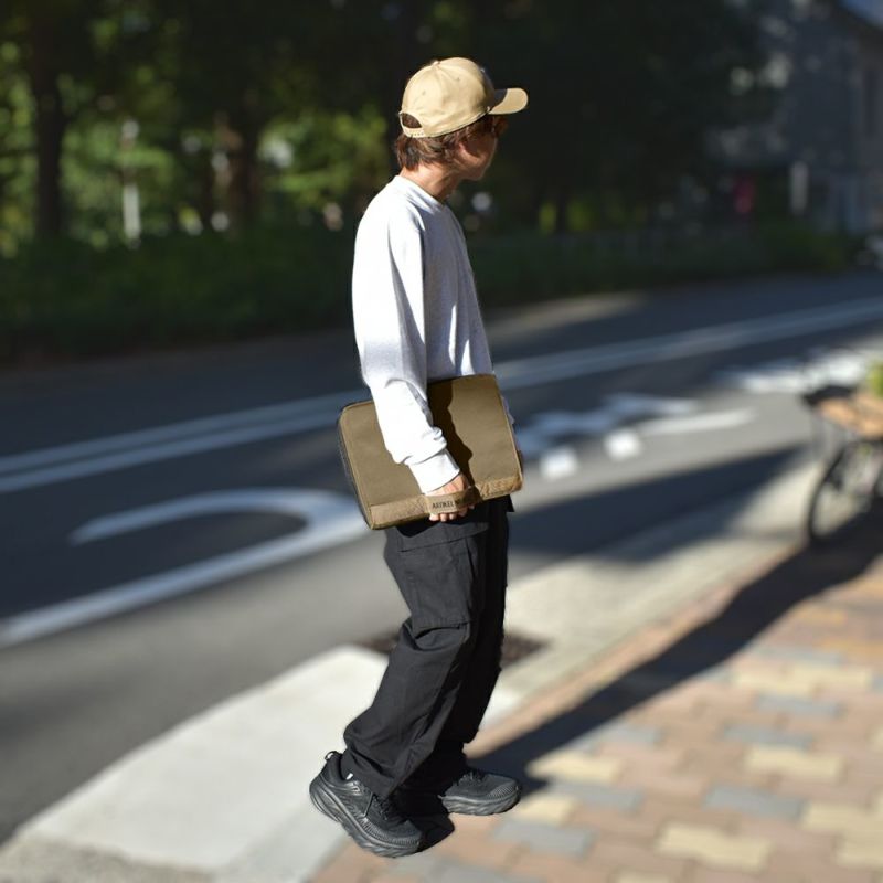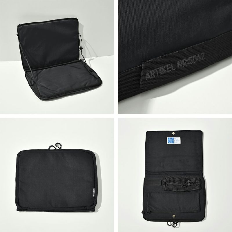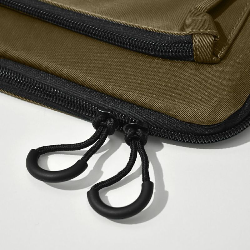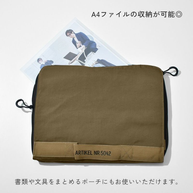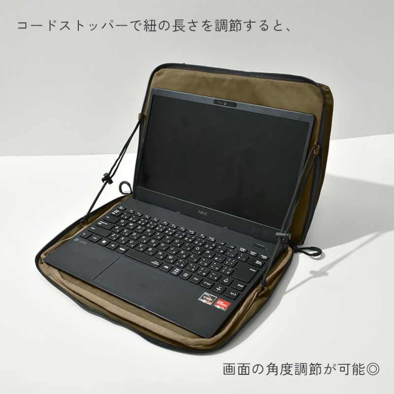 -手持ちしやすいハンドルベルト付き- ノートPCを入れたままさっと使える持ち運びに便利なラップトップバッグです。 小物など細かいものの整理・収納にも便利なポケット付き◎ 15インチまでのノートPC・タブレットに対応。 また、ガジェット類の持ち運び以外にも A4サイズの書類や手帳などの ドキュメントケースとしてもお使いいただけます。 シンプルなアウトドアテイストで、男女問わずお使いいただけます。