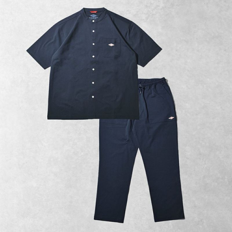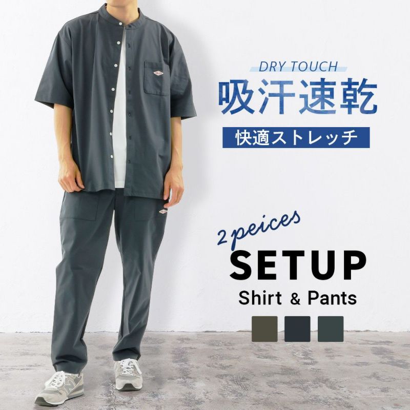 吸汗速乾で快適な着心地 ドライストレッチ天竺 バンドカラーシャツ&ボトムス 上下セット