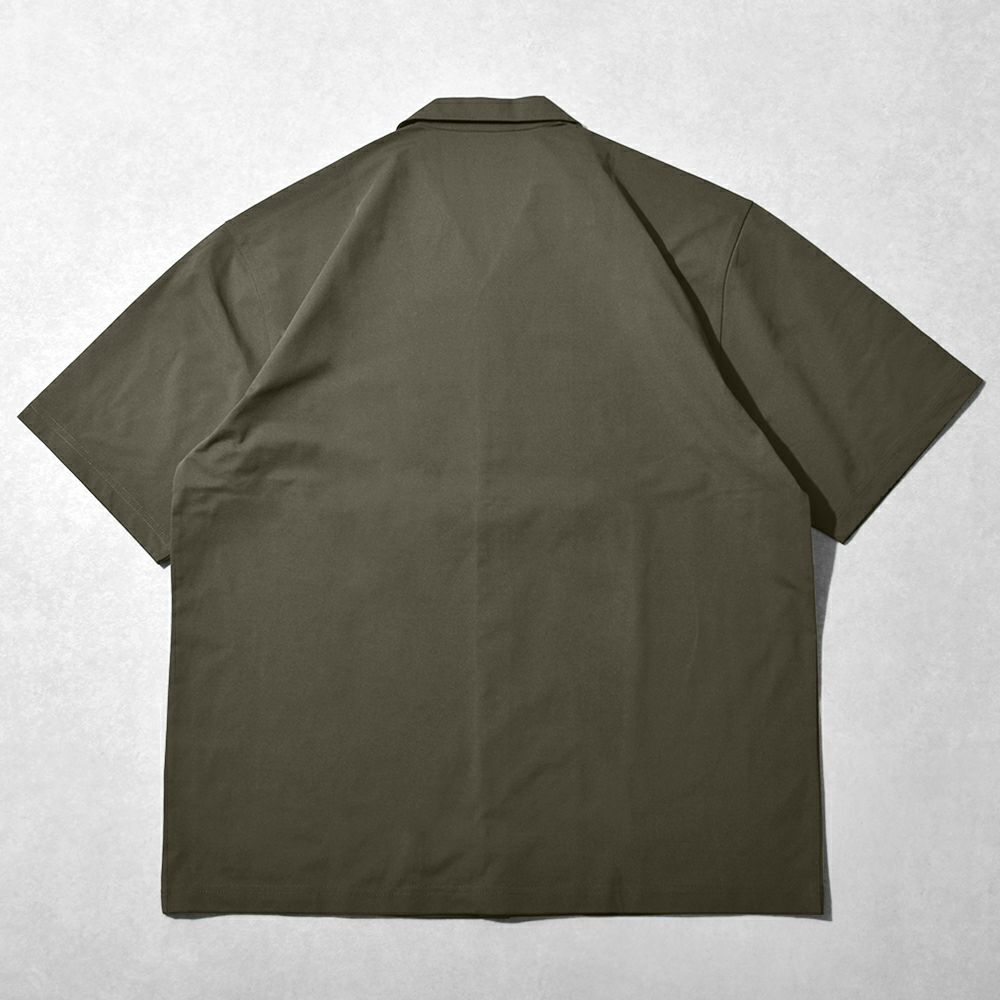 首元の開いたオープンカラー仕様ですっきりとしたさわやかな印象の半袖シャツ。