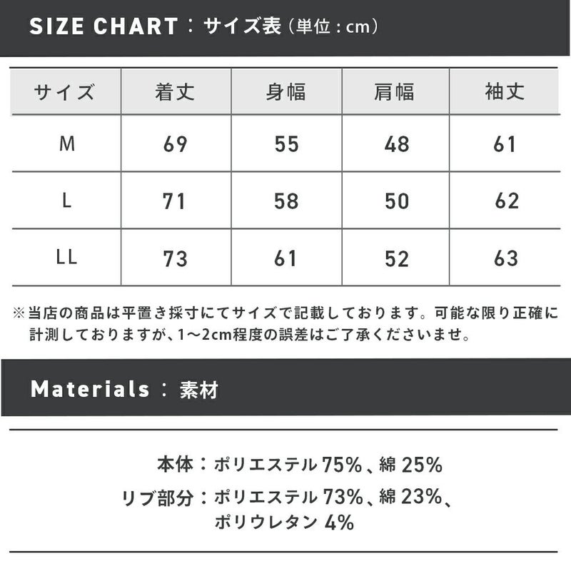リブ部分:ポリエステル73%/ 綿23%/ ポリウレタン4%