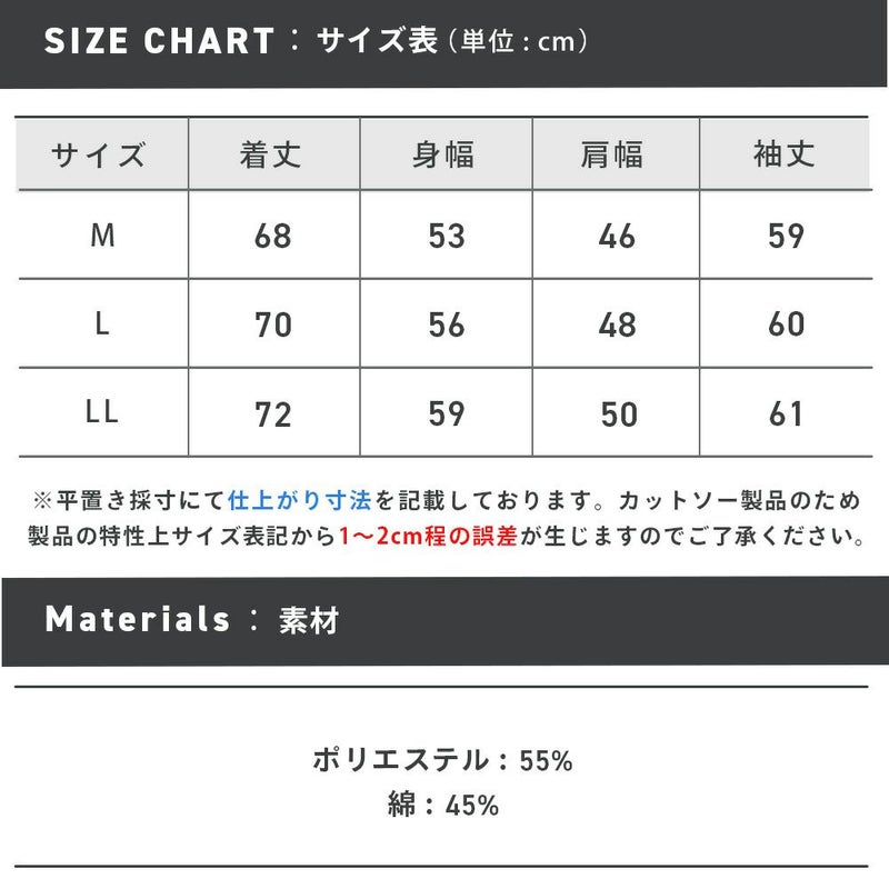 ※カットソー製品のため製品の特性上、サイズ表記より1~2cm前後する可能性があります。