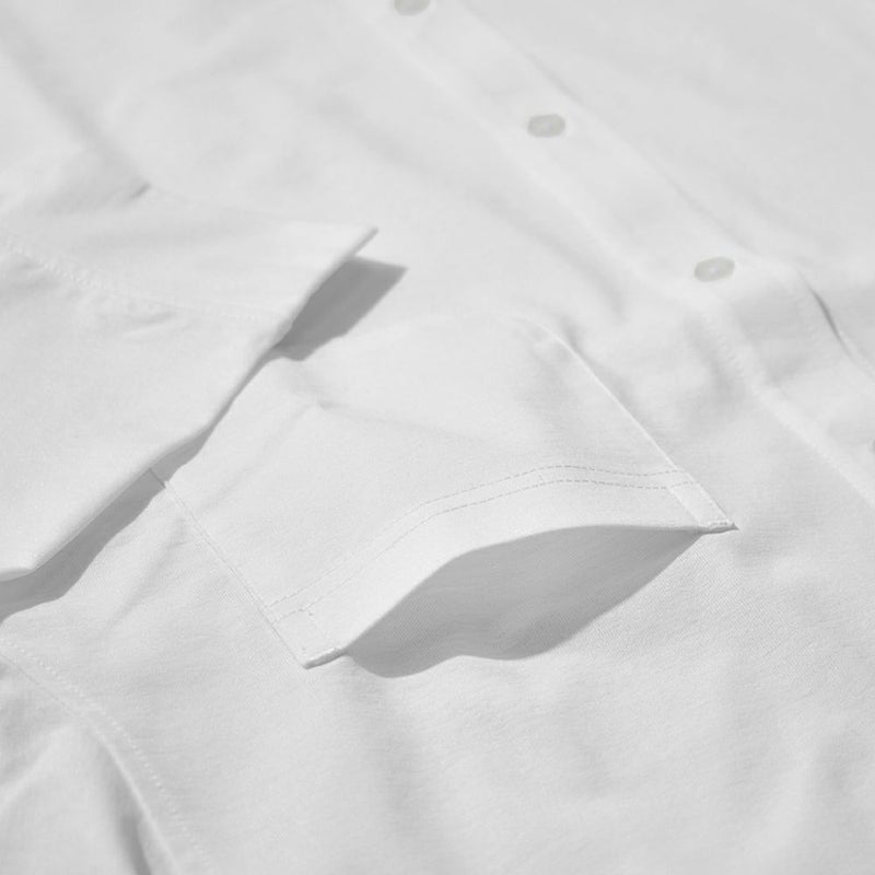 袖口にはボタンがなくTシャツのように着用でき、そのまま腕をまくることも可能です。
