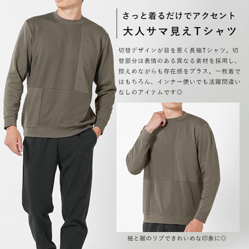 異なる素材を組み合わせた控えめながらも存在感のある長袖切替Tシャツ。