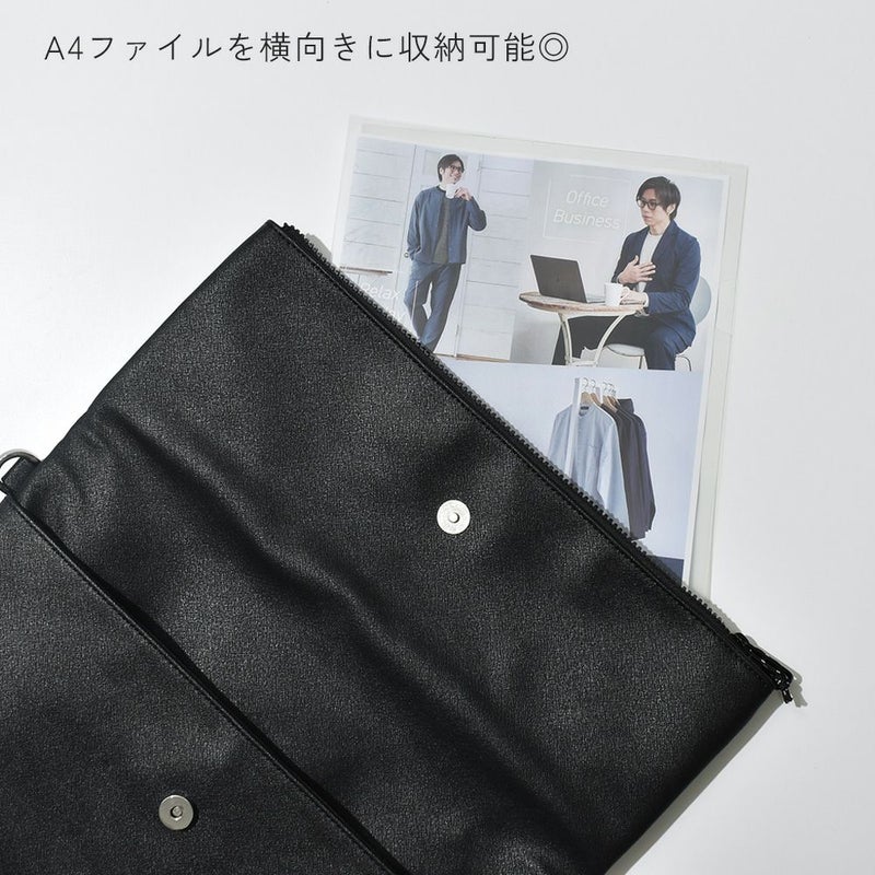 -2WAYで使える!大人のクラッチバッグ- 普段のカジュアルスタイルからきれいめスタイルまで幅広く合わせられる 高級感のある大人の雰囲気を醸し出すクラッチバッグです。 取り外し可能なショルダーストラップが付属し、ショルダーバッグとしても 肩掛けとしてもお使いいただけます◎ また、豊富な収納ポケットとA4サイズが収まる大きめのサイズ感もポイントです。