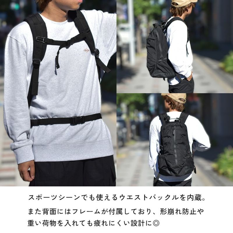 また、登山などスポーツシーンでも使えるウエストバックルも内蔵◎