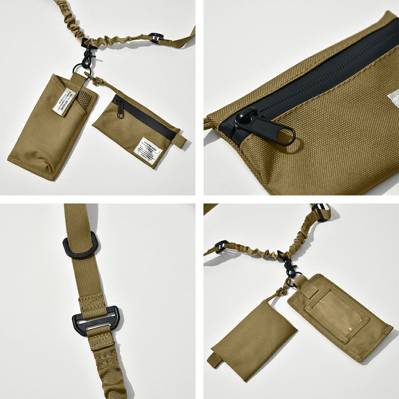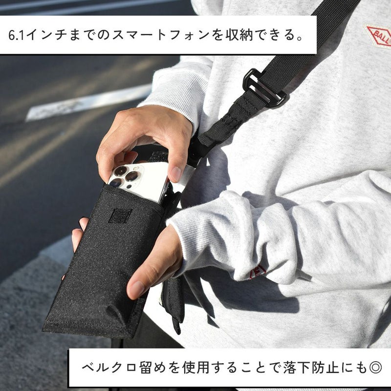 -ミニマルなライフスタイルにフィット- スマホケースとコインケースがセットになった便利なショルダーポーチです。 スマートフォンケースは出し入れのしやすさと落下防止を兼ね揃えたベルクロ留めを、 お札を二つ折りにして入れられるサイズ感のコインケースには防水性を高める止水ファスナーを使用。 ストラップに付属しているDリングにもイヤホンケースやキーホルダーなどを 取り付けられます。また、フォンケース、コインケースはそれぞれ取り外して使用可能なため お好みに合わせてカスタマイズしてお使いいただけます◎ スマートフォンサイズ:6.1インチまで収納可能確認済 ※お使いのケースの素材・形状によっては収納できない場合がございます。 ご注意ください。