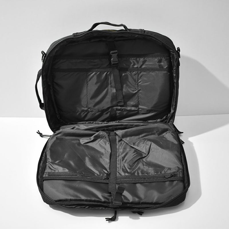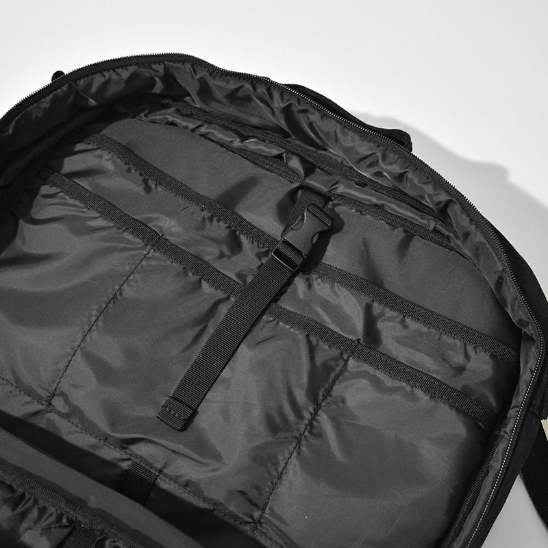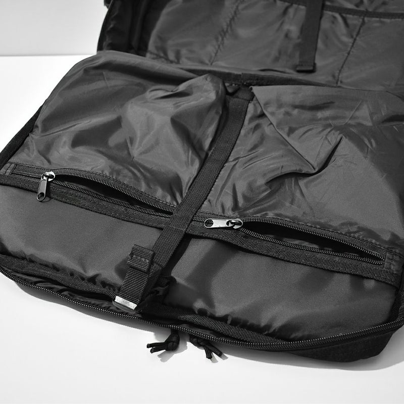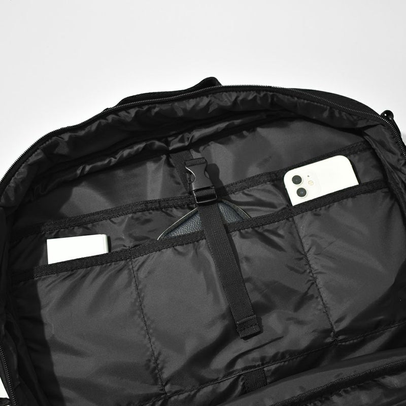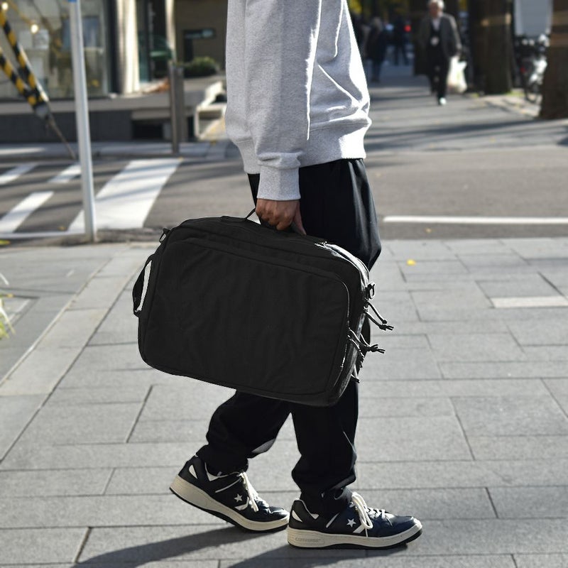 -通勤や出張などビジネスに特化したバックパック- リュックサック/ハンドバッグ/ショルダーバッグ/キャリーオンバッグの4WAYで使える、ビジネスシーンに大変便利なアイテムです。 底面には水汚れに強いターポリンを採用。 容量を増やせる拡張ファスナーを付属しているので、出張時など荷物が増えた際に大変便利です◎ メイン収納は全面開放ができるため、書類やファイル、着替えなどの収納に、サブ収納にはタブレットなど出し入れの頻度が多いアイテムの収納におすすめです。 メインとサブどちらにも15インチまでのPC・タブレットの収納が可能。また、計10個のポケットを付属しているのでガジェット類など小物の整理整頓にも大変便利です。 シンプルなデザインなので、ビジネスシーン以外にも違和感なくお使いいただけます。