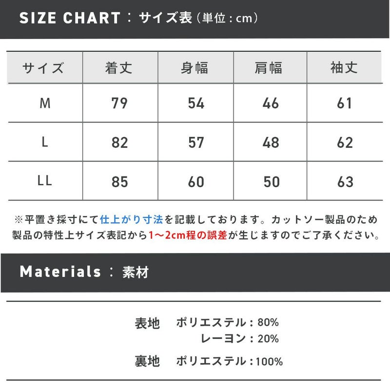 ※カットソー製品のため製品の特性上、サイズ表記より1~2cm前後する可能性があります。