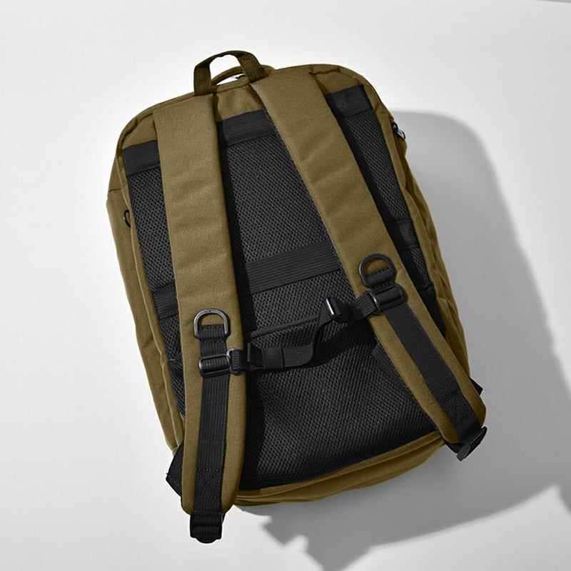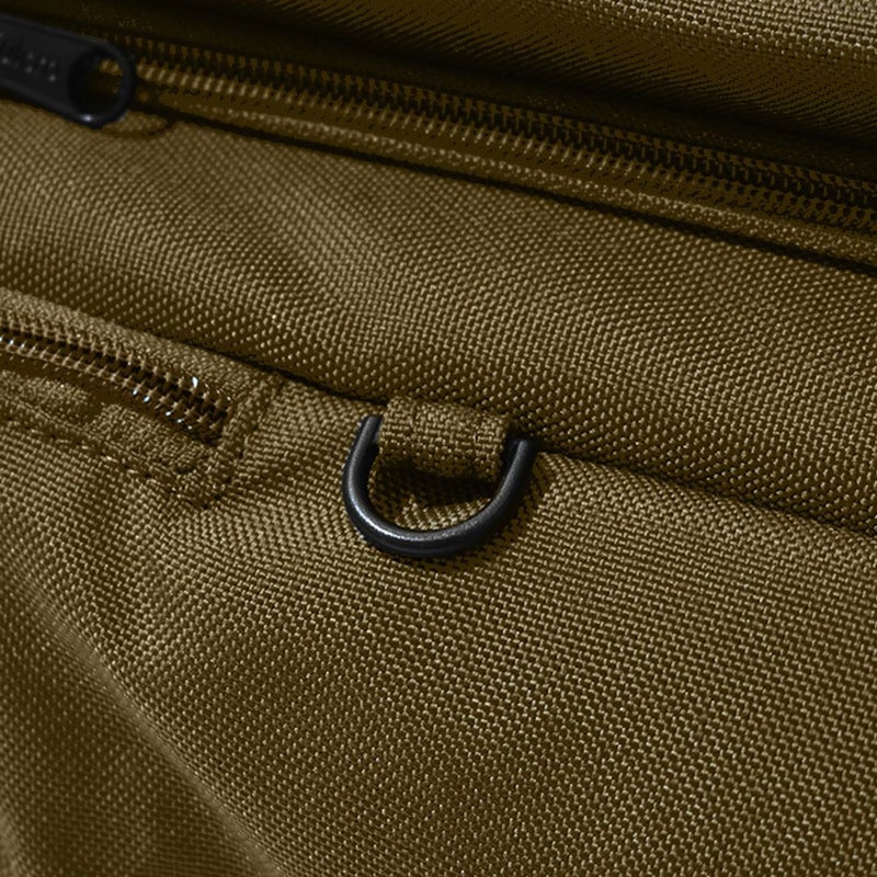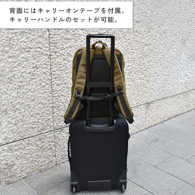 背面側にはキャリーオンテープがあるためキャリーハンドルのセットが可能。セキュリティーポケットもあるので海外旅行にも大変おすすめです。