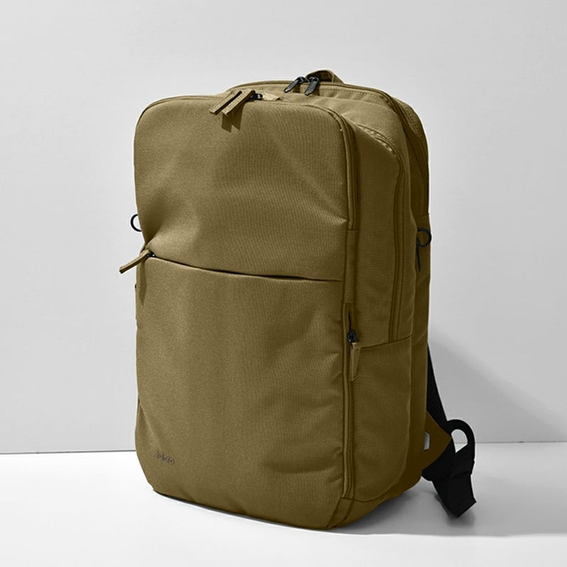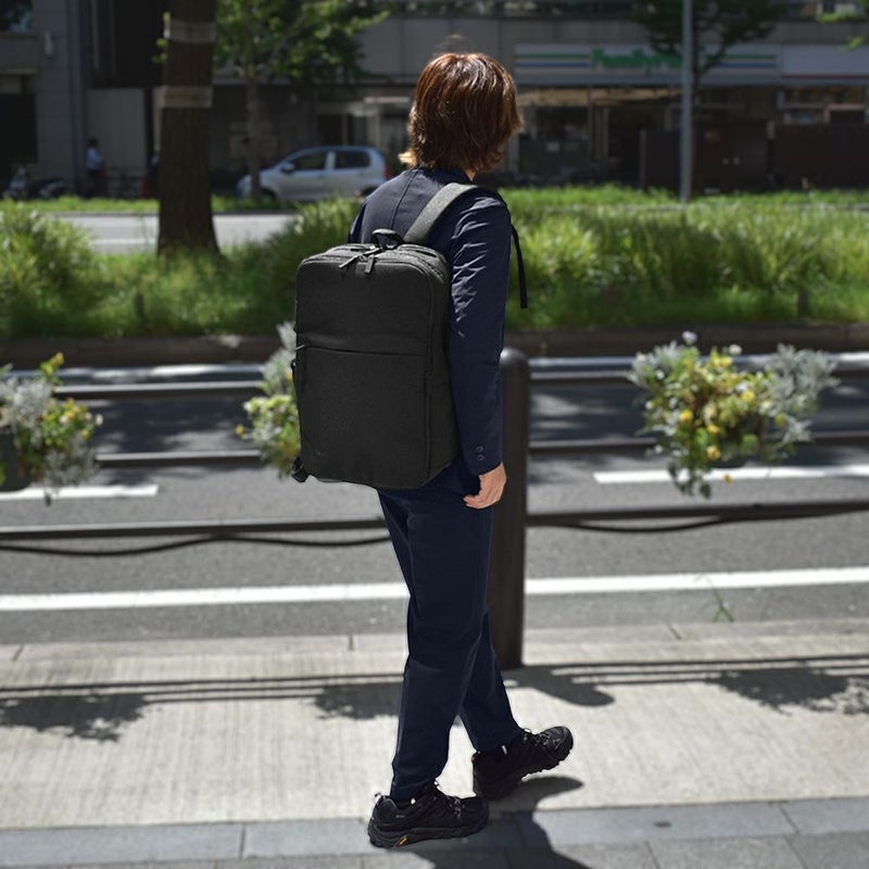 シンプルな外観で、コンパクトながらも収納力の高いバックパック。
