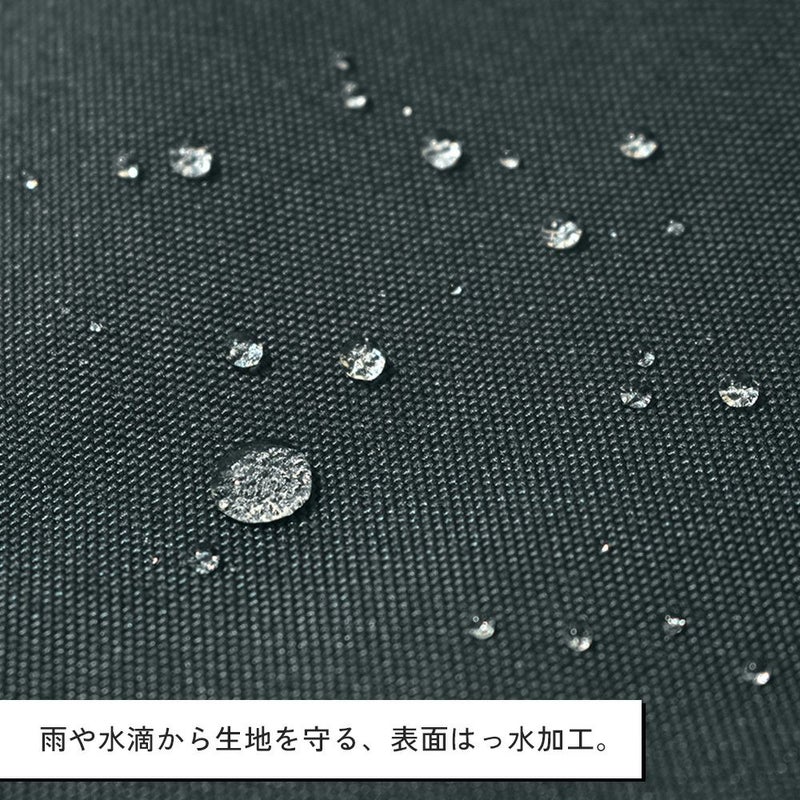 表面には撥水加工を施しているので、雨や水滴からも生地を守ってくれます。