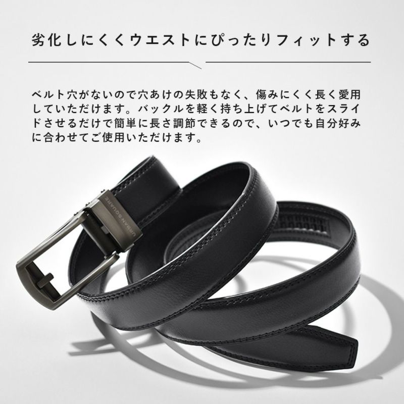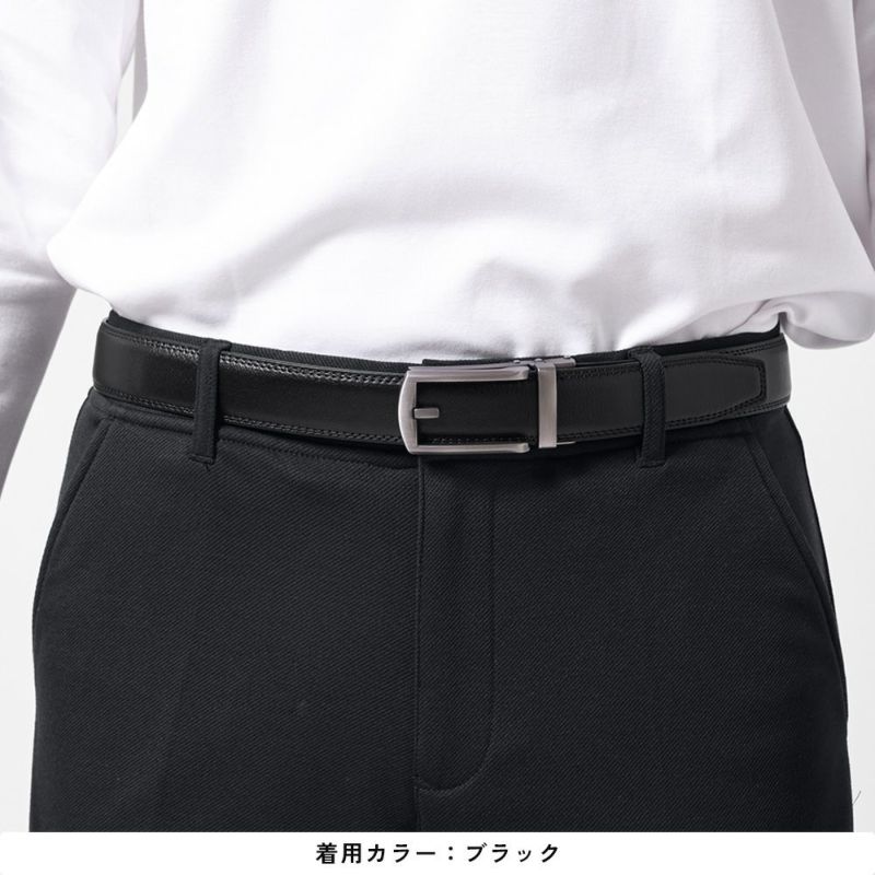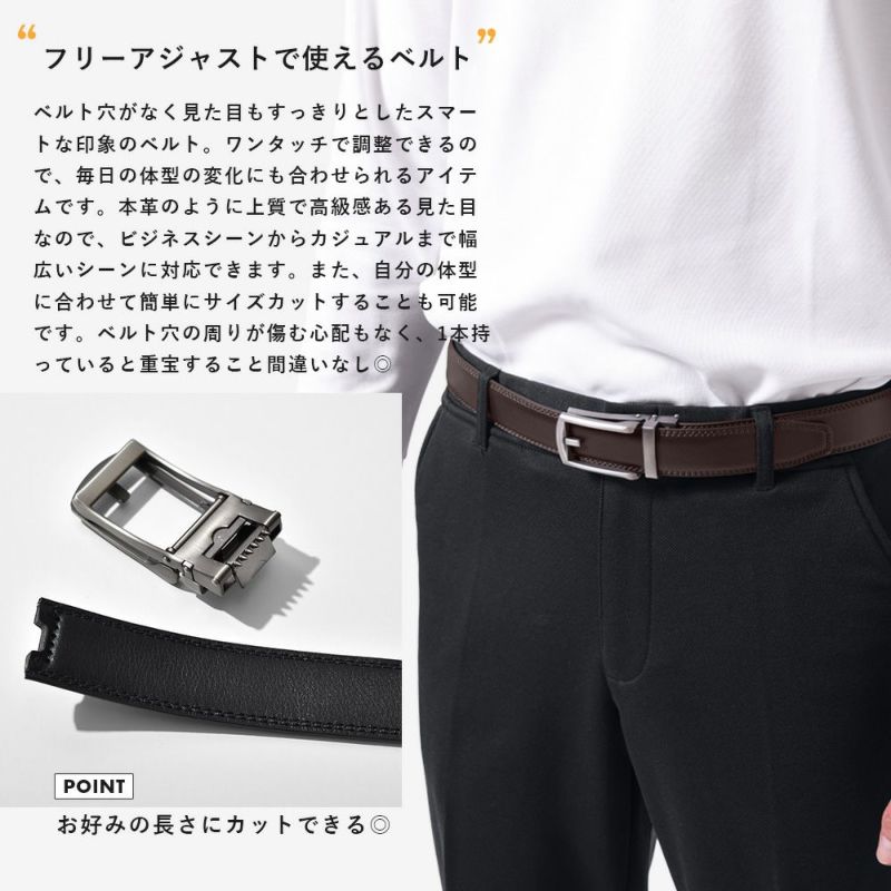 ベルト穴がなくスマートな印象を与え、本革のようにキチンと見えるベルト。