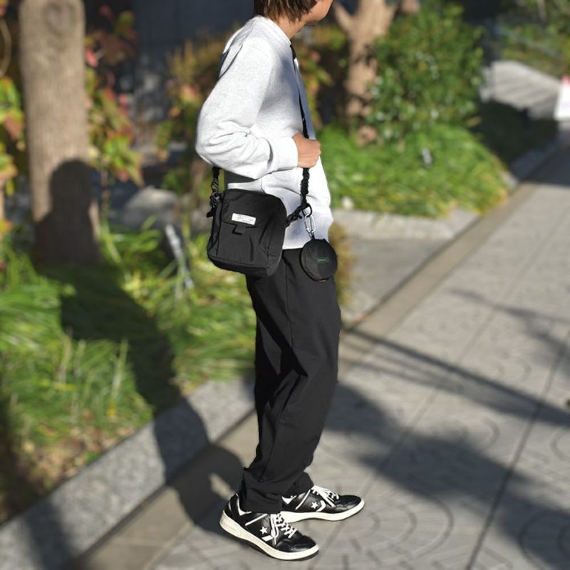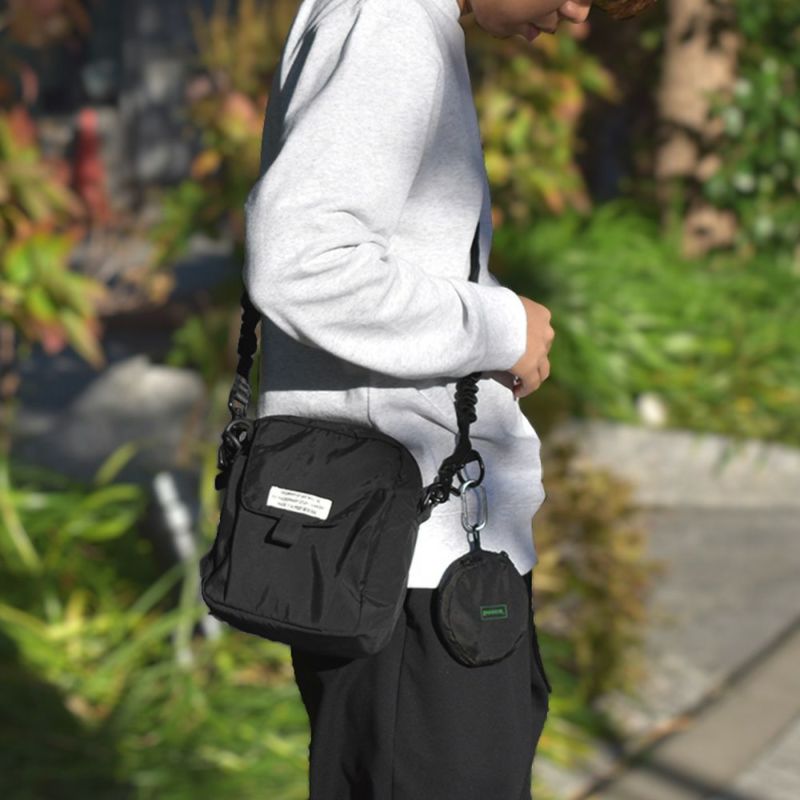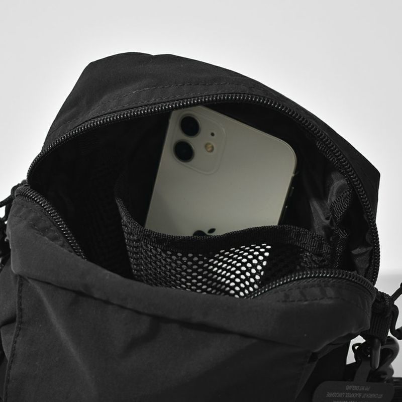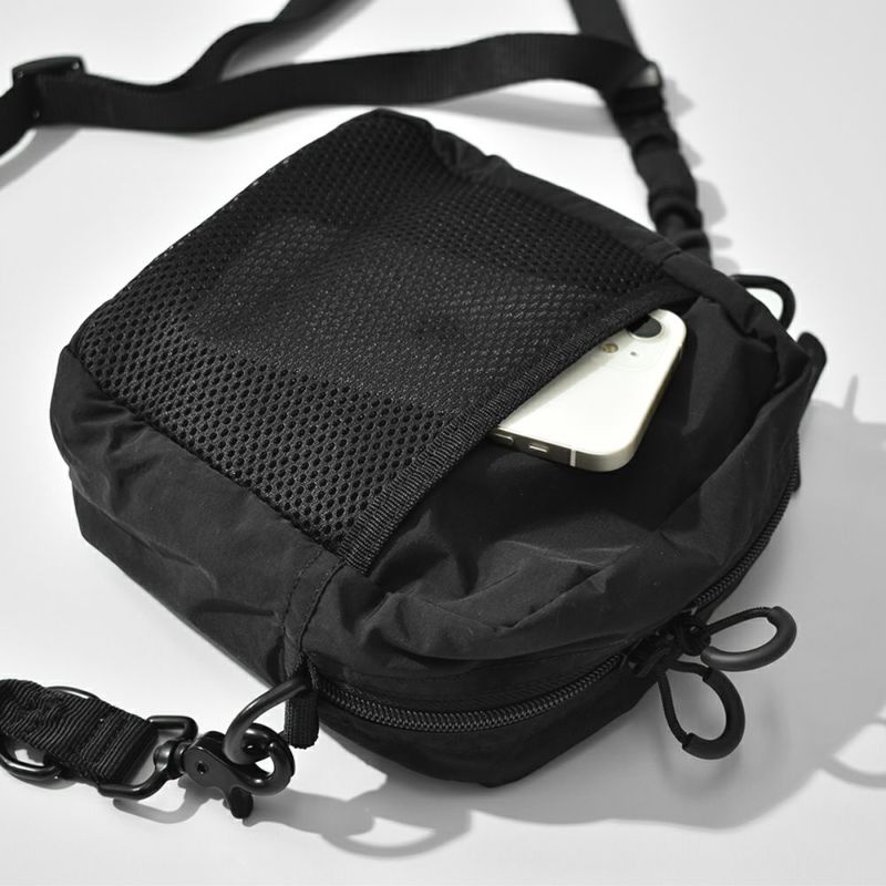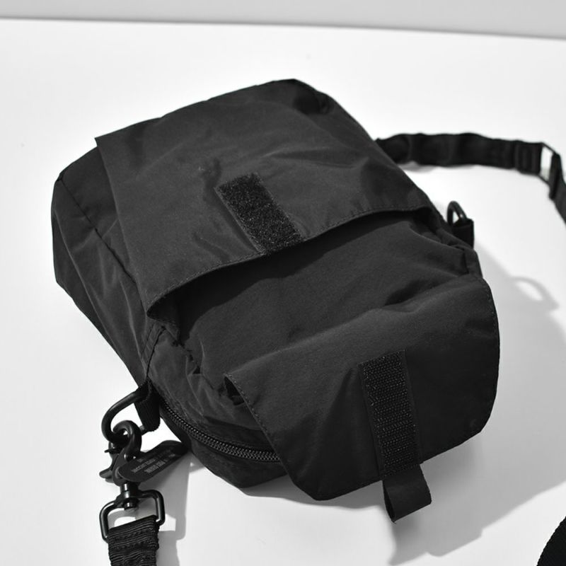 撥水加工を施したナイロン製のシャツ生地を採用した、ショルダー型ポーチ。