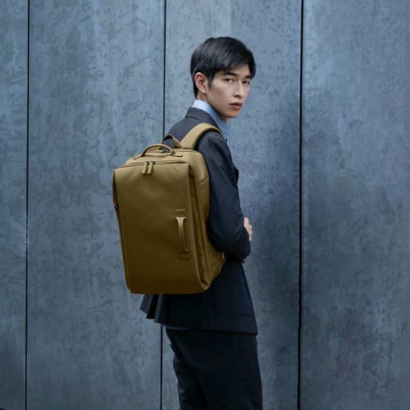 扉をモチーフにしたデザインが特徴的な、横開き仕様のバックパック。