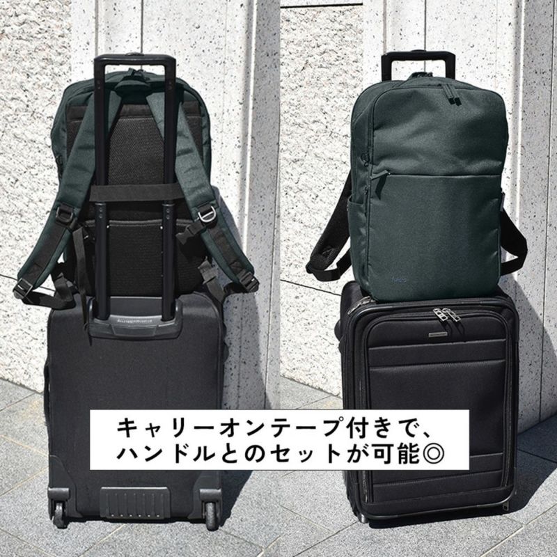 背面にはキャリーオンテープがあるためキャリーハンドルのセットが可能。セキュリティーポケットもあるので海外旅行にも大変おすすめです。