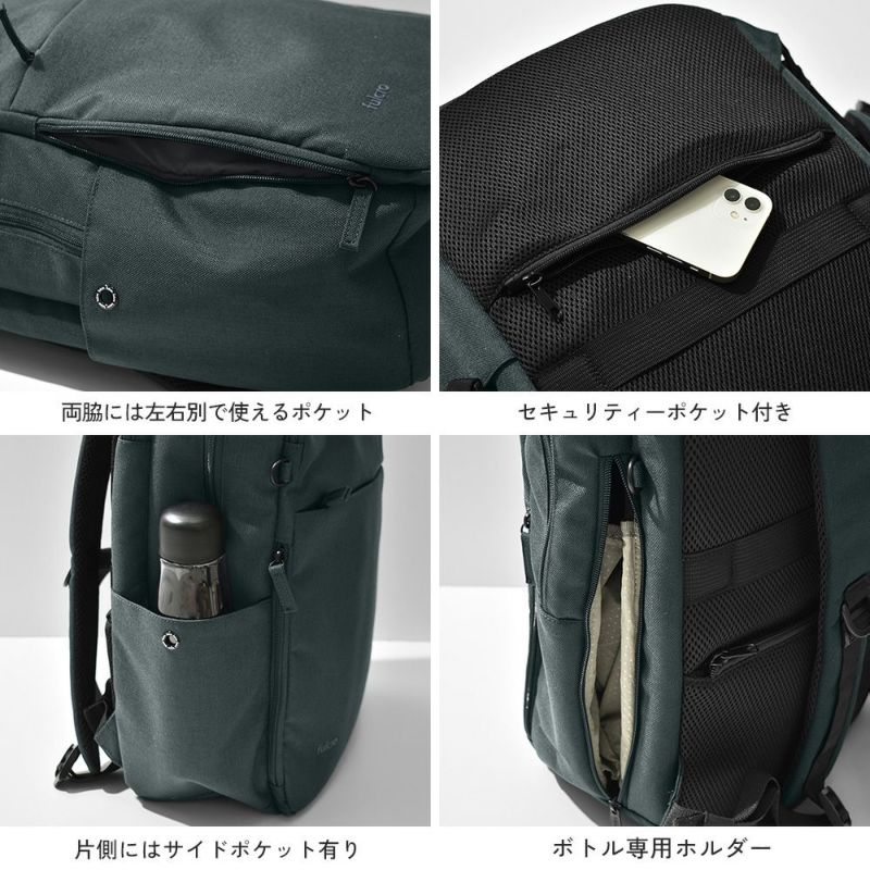 シンプルな外観で、コンパクトながらも収納力の高いバックパック。