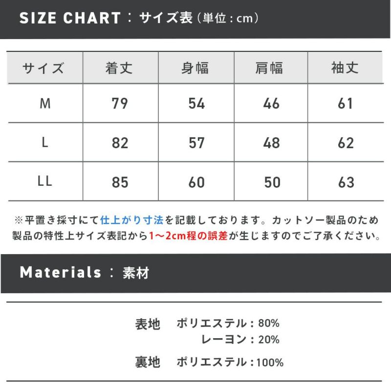 ※カットソー製品のため製品の特性上、サイズ表記より1~2cm前後する可能性があります。