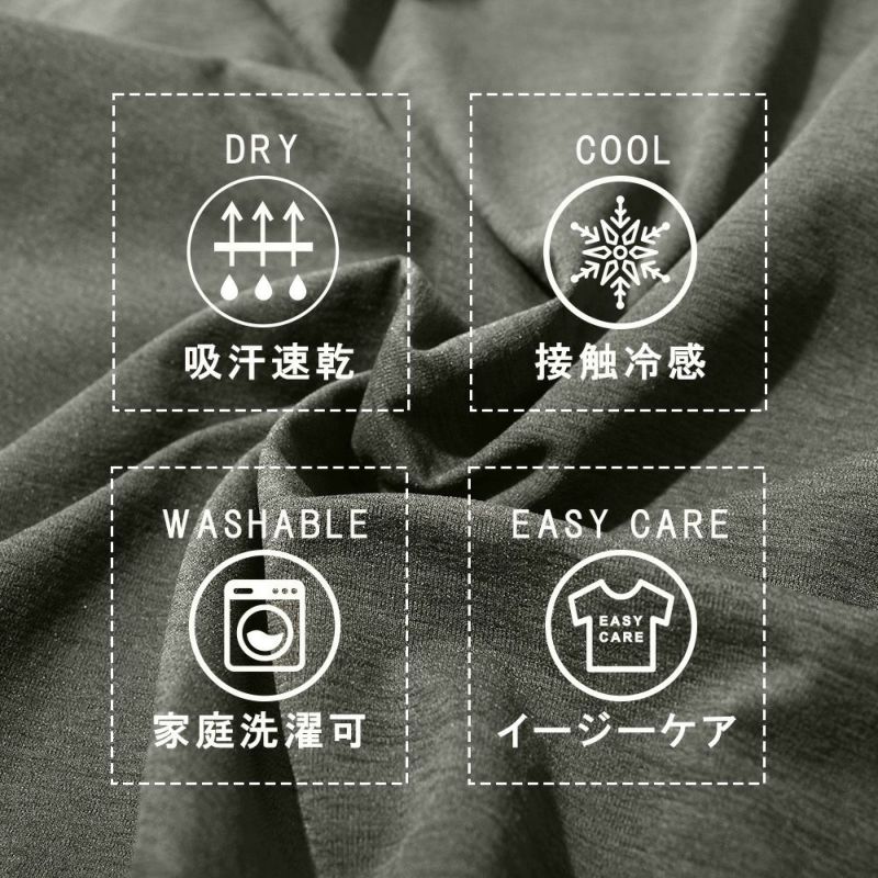 接触冷感・吸汗速乾機能があり暑い時期に最適の素材です。 さらに、イージーケア&ウォッシャブルなのでシワになりづらく洗濯後も手間いらず。 きれい目で好印象を与えられるのに、着心地はジャージのように楽な一押し素材です。