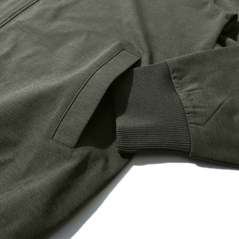 -キチンと見える新感覚ジャージ- 季節の変わり目に活躍するMA-1ジャケット。 シワになりにくく程よい光沢感、ハリ感のある上品な印象。 伸縮性があり、ストレッチが効くため、お出かけにもピッタリな一枚です。 自宅で洗濯が可能なため、簡単にお手入れができます♪ また接触冷感素材を使用しているため、これから暖かくなっていく季節にも 気軽に羽織れるおすすめアイテムです。