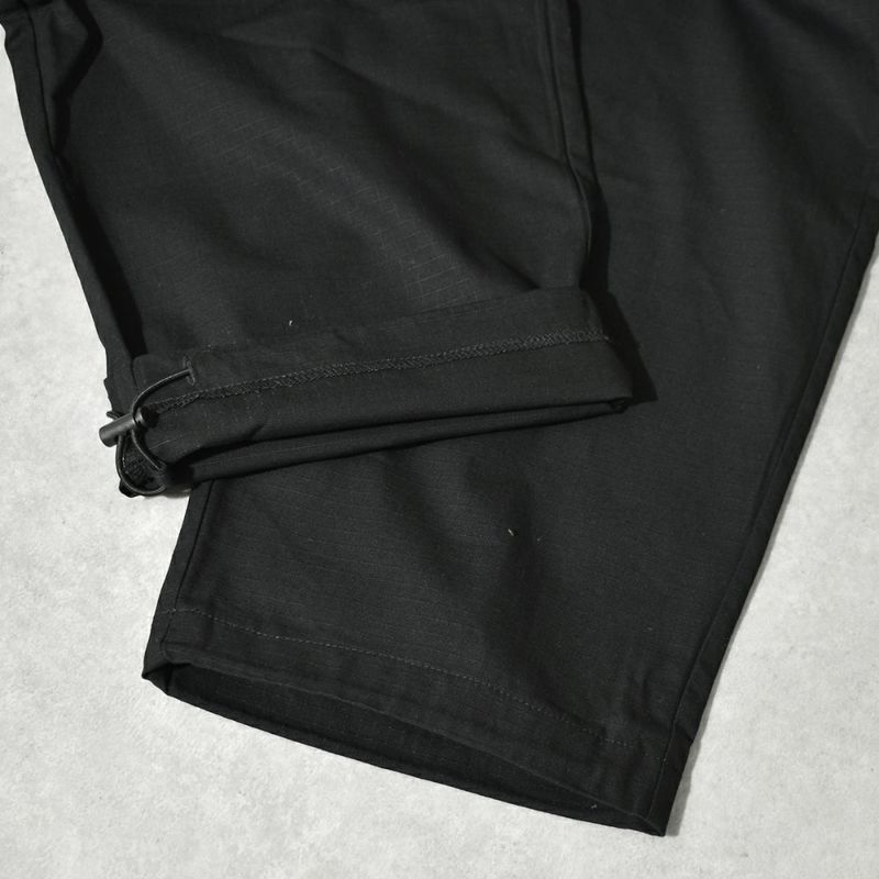 裾の内側の絞りで裾を絞って履くと、また違った雰囲気に。