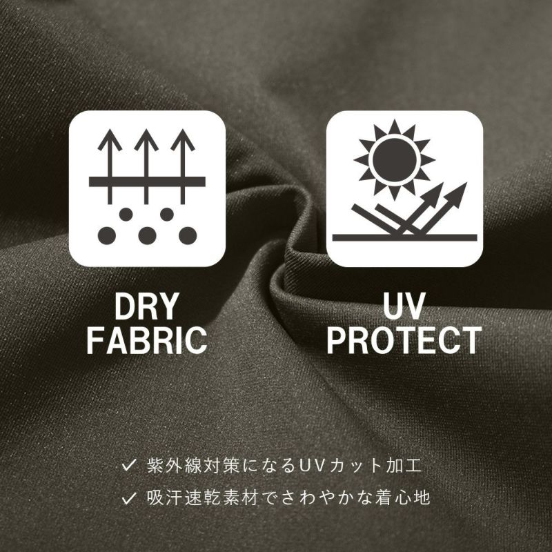 また、汗をかいても乾きやすい吸汗速乾に、紫外線対策ができるUVカット加工のあるアイテムなので、