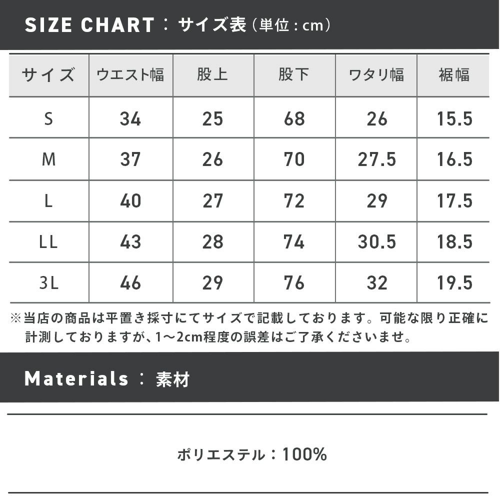 Sから3Lサイズまでの展開で、あなたにぴったりのサイズが見つかります!