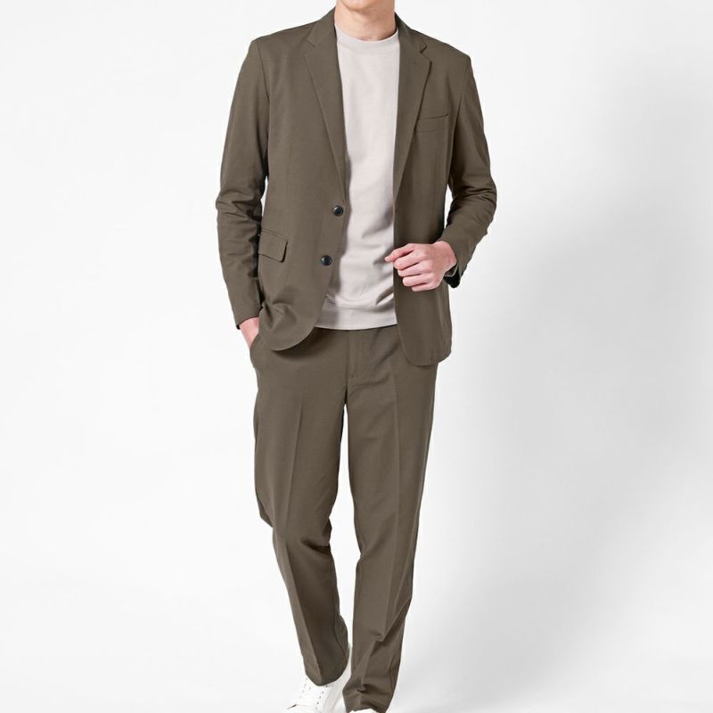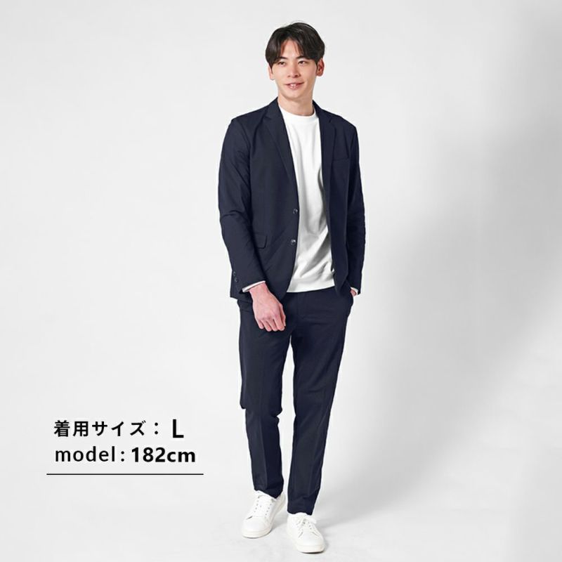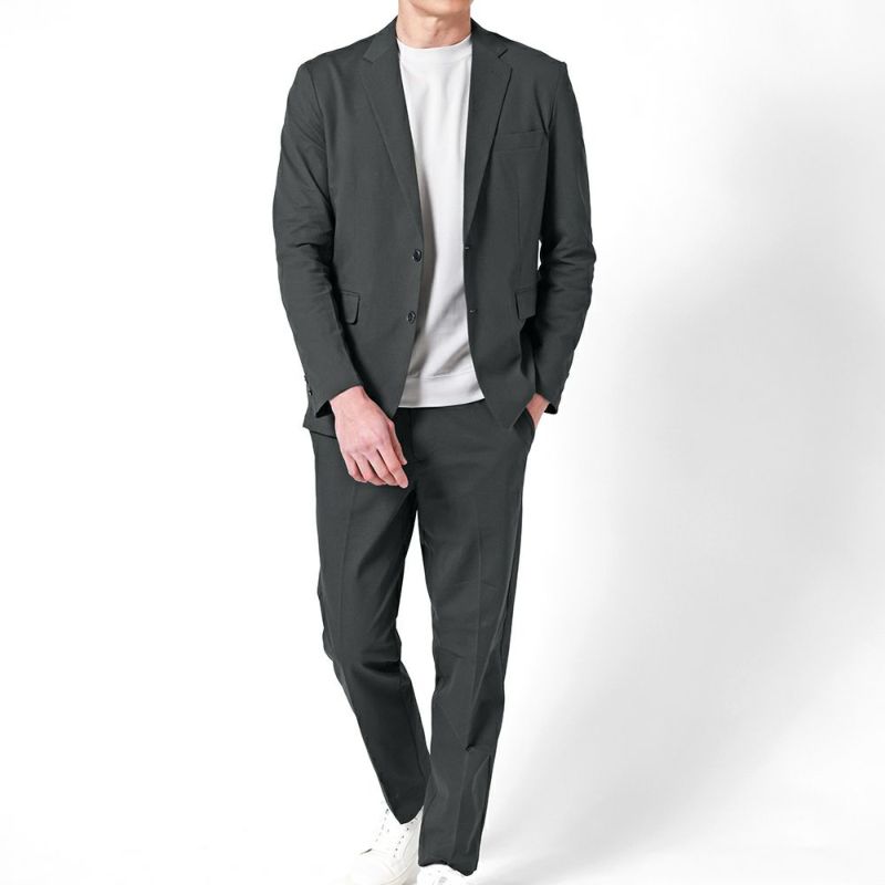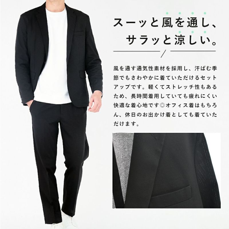 -サラッと清涼、オフィスカジュアルセットアップ- 通気性の良い素材を採用した汗ばむ季節にもさわやかに着ていただけるカジュアルスーツ。 軽くて涼しい着心地なので、夏場のオフィス着におすすめです。 ポケットの裏側も通気性抜群のメッシュ素材なので蒸れにくい◎ またストレッチ性もあるため、動きやすくストレスフリーに着用していただけます。 ビジネスシーンにはもちろん、きれいめカジュアルなコーデなど幅広い着回しが可能。