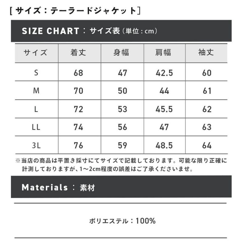 サイズ(cm) 着丈 身幅 肩幅 袖丈