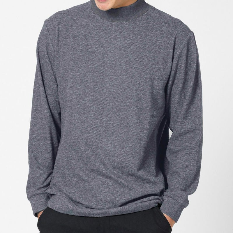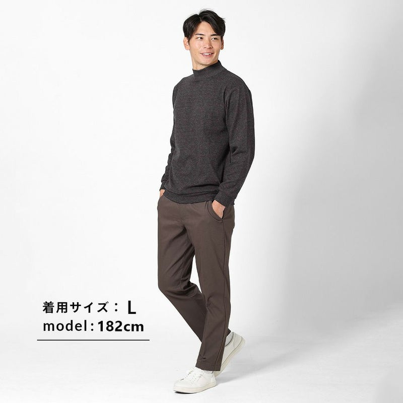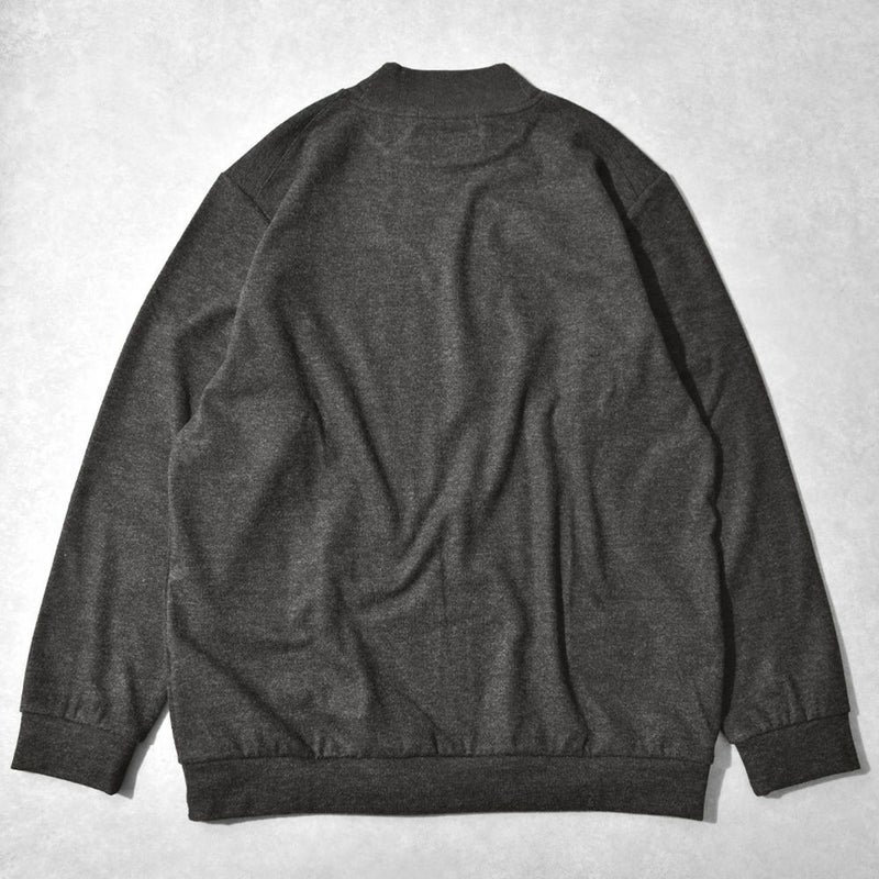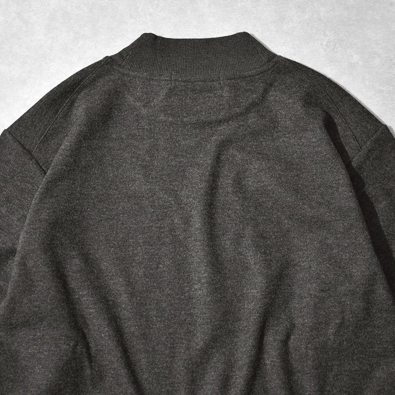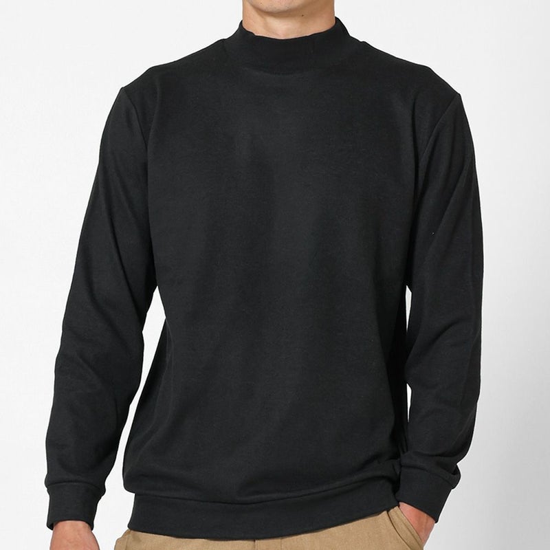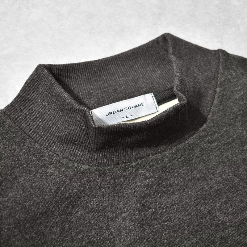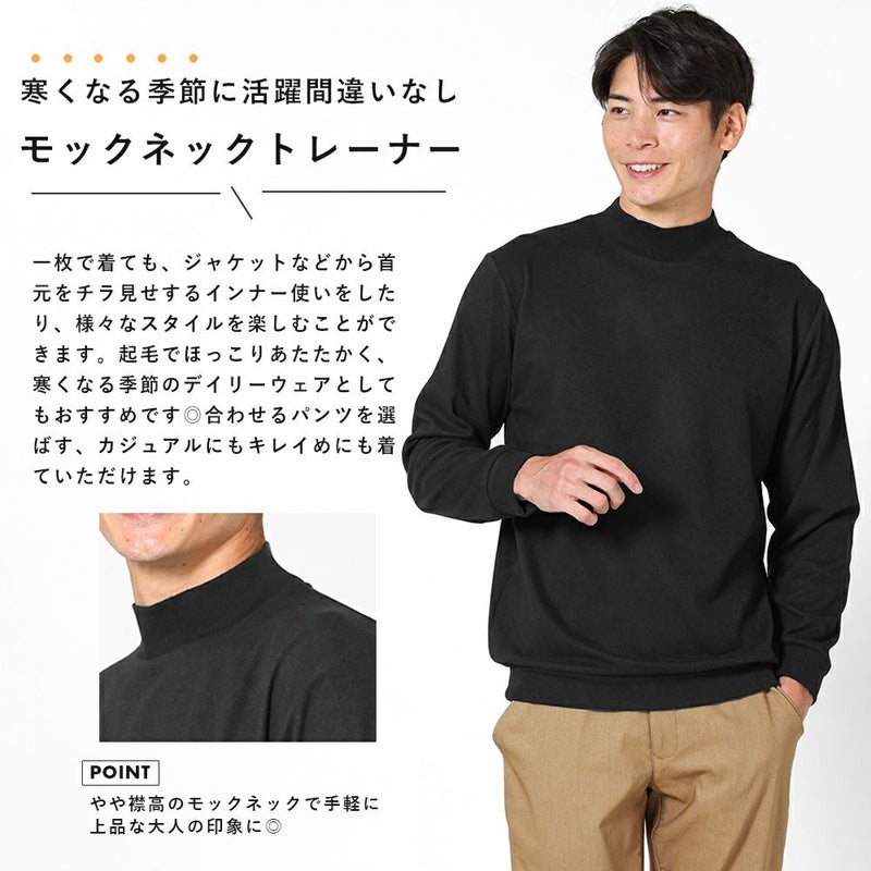 やや襟に高さがあるモックネックがスマートな印象のトレーナー。