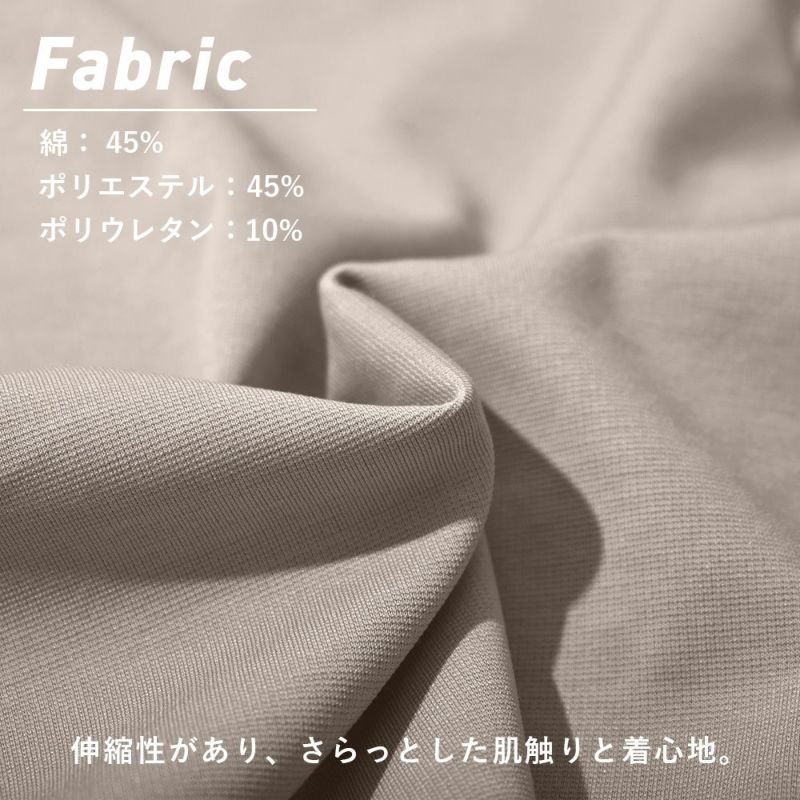 ストレッチ性があり動きやすいため、秋や春のカジュアルウェアにおすすめです。