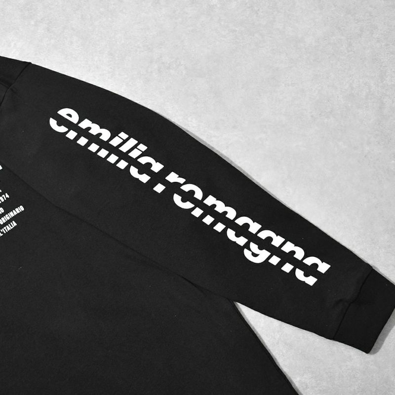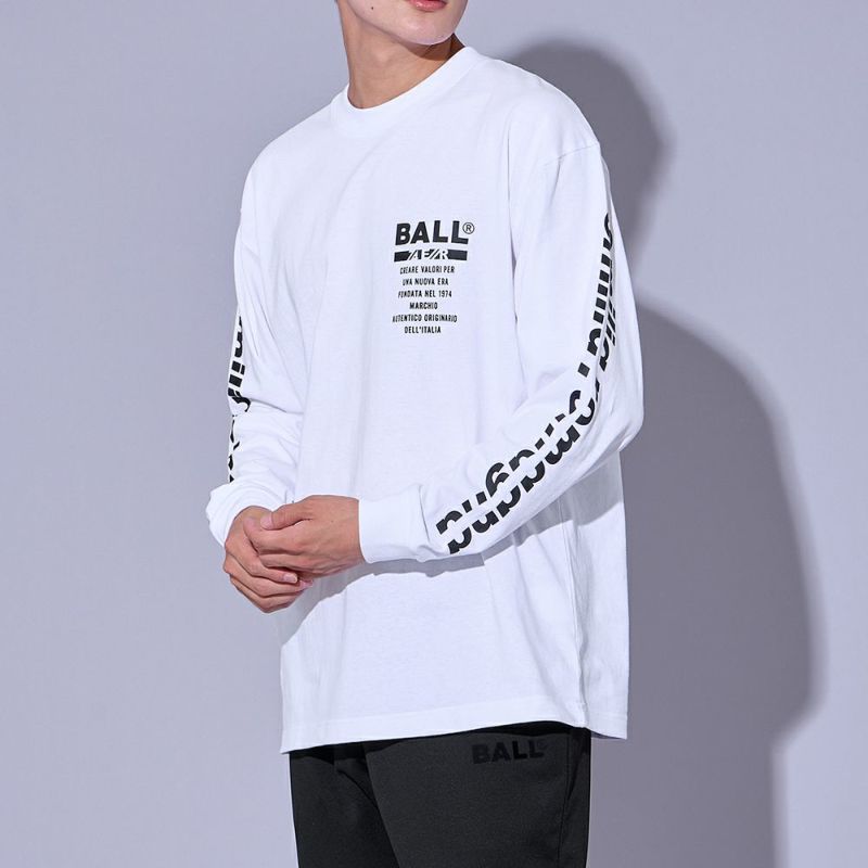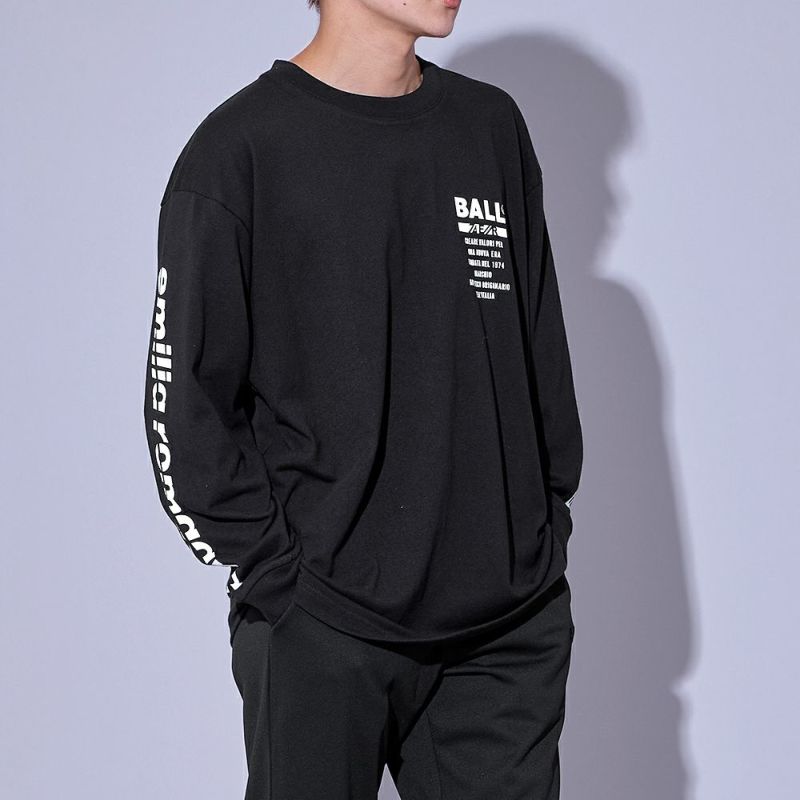 シンプルながらインパクトのあるプリントデザインが目を惹く長袖Tシャツ。