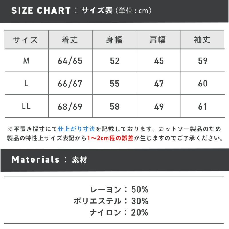 ※カットソー製品のため製品の特性上、サイズ表記より1~2cm前後する可能性があります。