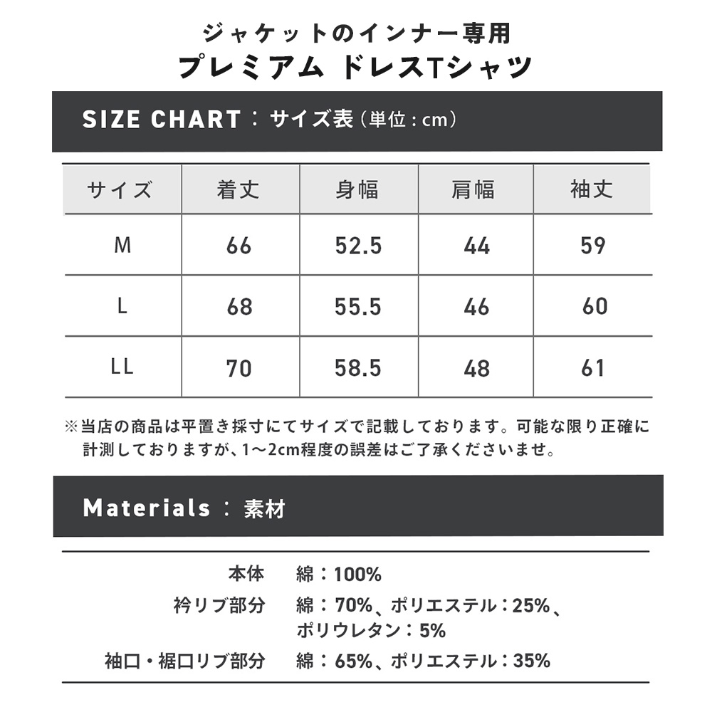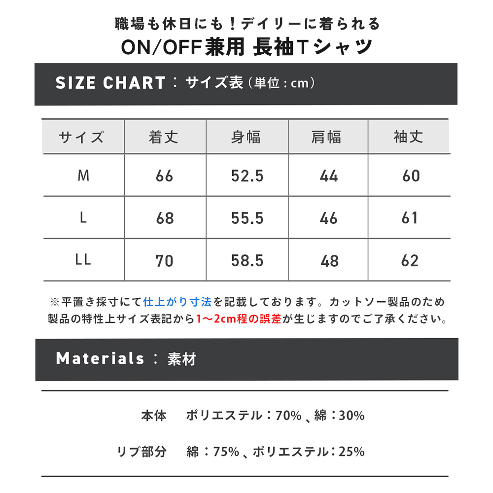 ※カットソー製品のため製品の特性上、サイズ表記より1~2cm前後する可能性があります。