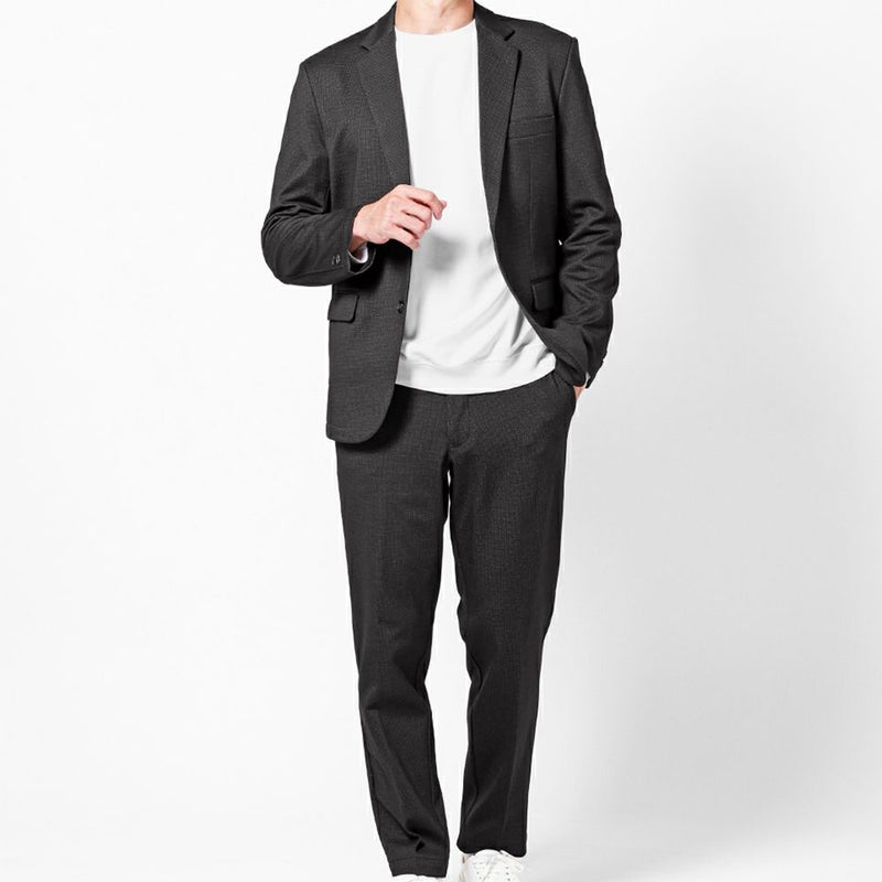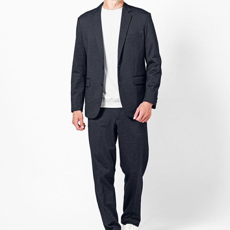 柄デザインが上品な印象の裏起毛であたたかな着心地のカジュアルスーツ。