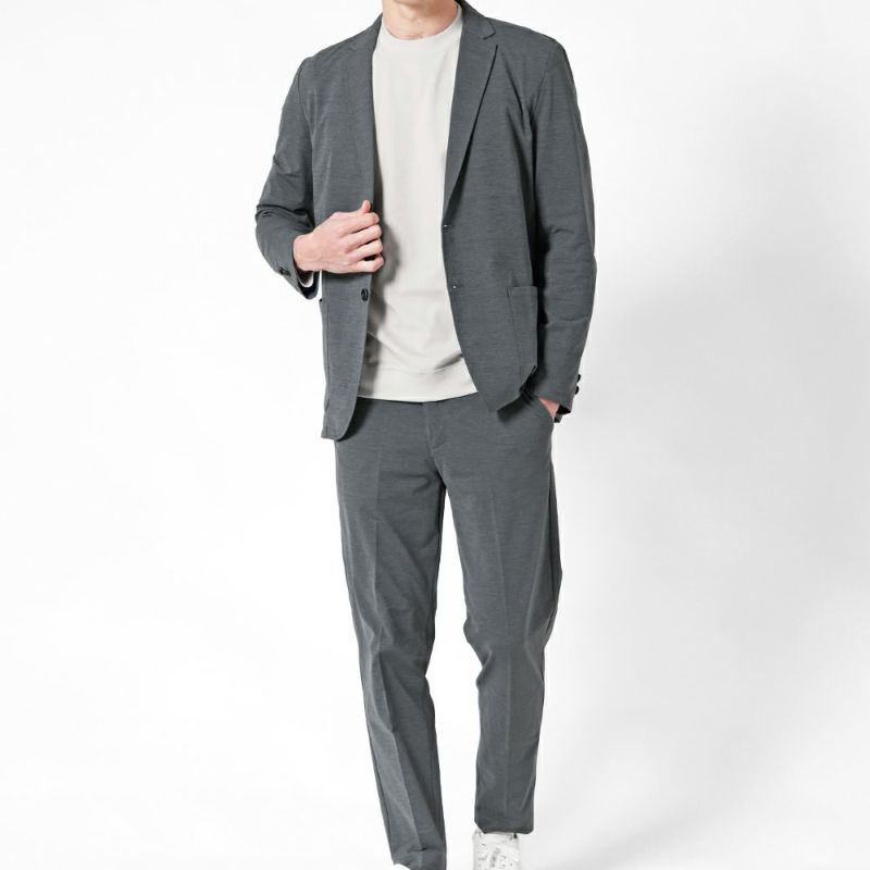 高いストレッチ性で動きやすく、夏場でも涼しく快適に着られるひんやりな着心地のカジュアルスーツ。