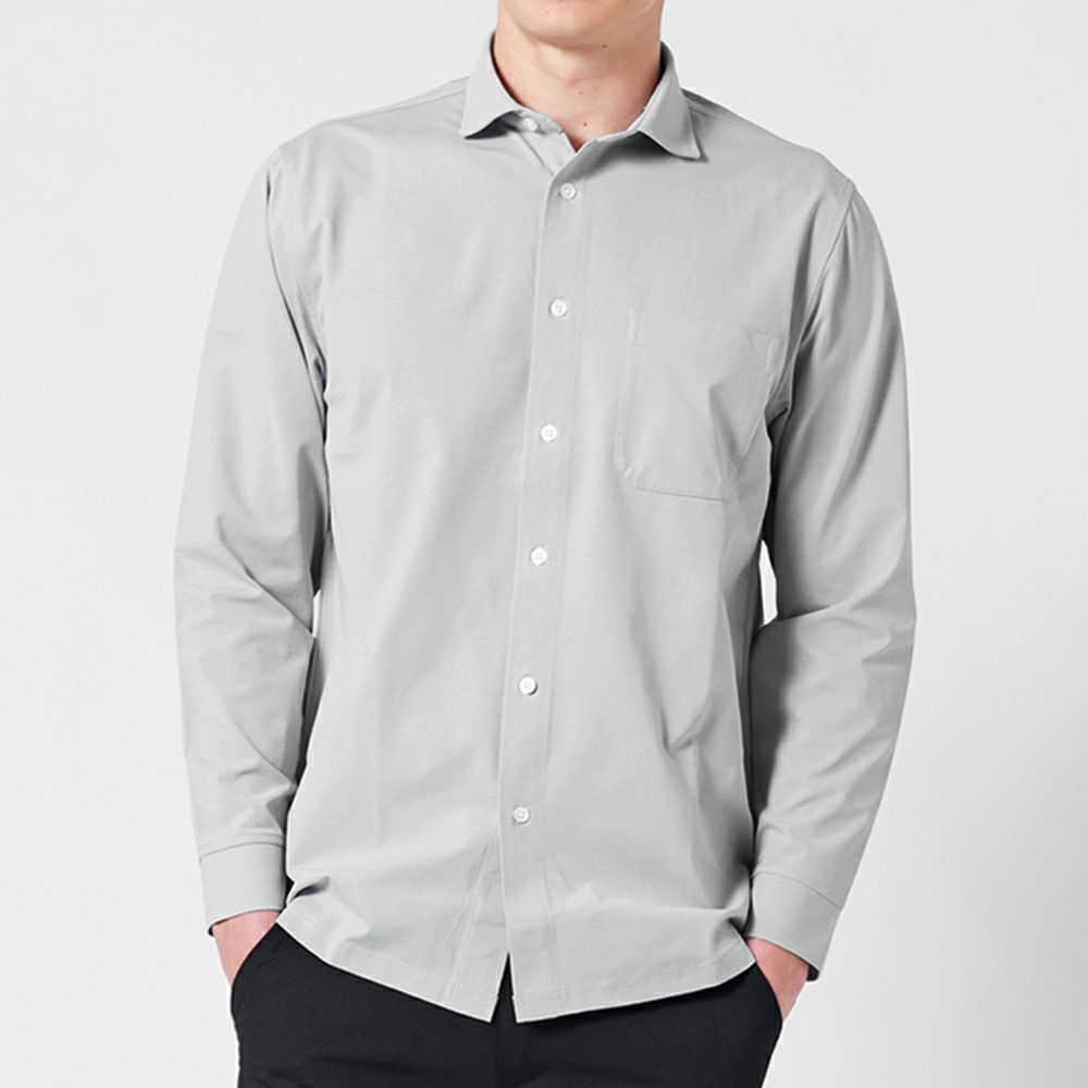 袖口にはボタンがなくTシャツのように着用でき、そのまま腕をまくることも可能です。