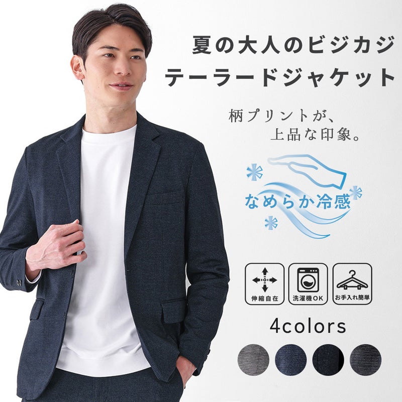 -ひんやりなめらか、上品サマ見え。- 柔らかくなめらかな肌触りでひんやりとした着心地のテーラードジャケット。 上品で落ち着きのある柄プリントは、大人の風格とスマートさを演出してくれます。 軽い着心地でストレッチ性もあるため着疲れしにくく、 夏場のオフィス着としておすすめの一着です。 オフィスカジュアルから休日スタイルまで、 オンオフ幅広く着回しいただけます。 Sから3Lサイズまでの展開で、あなたにぴったりのサイズが見つかります!