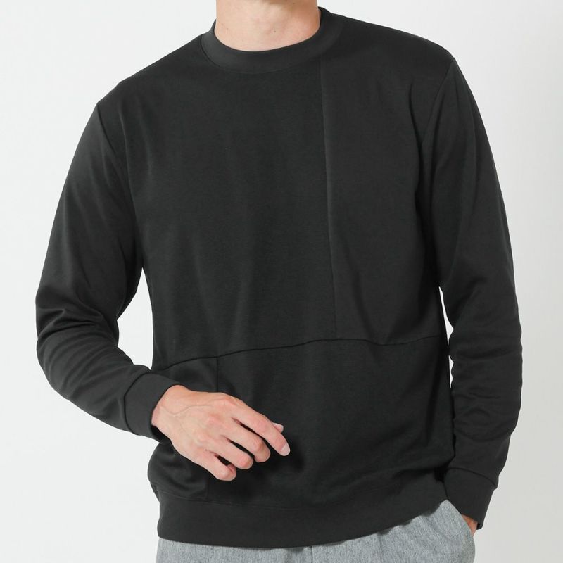 異なる素材を組み合わせた控えめながらも存在感のある長袖切替Tシャツ。