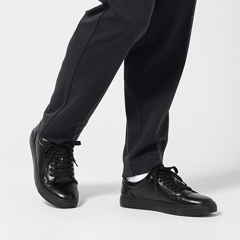 程よく光沢感がありジャケットスタイルにも合うレースアップスニーカー。