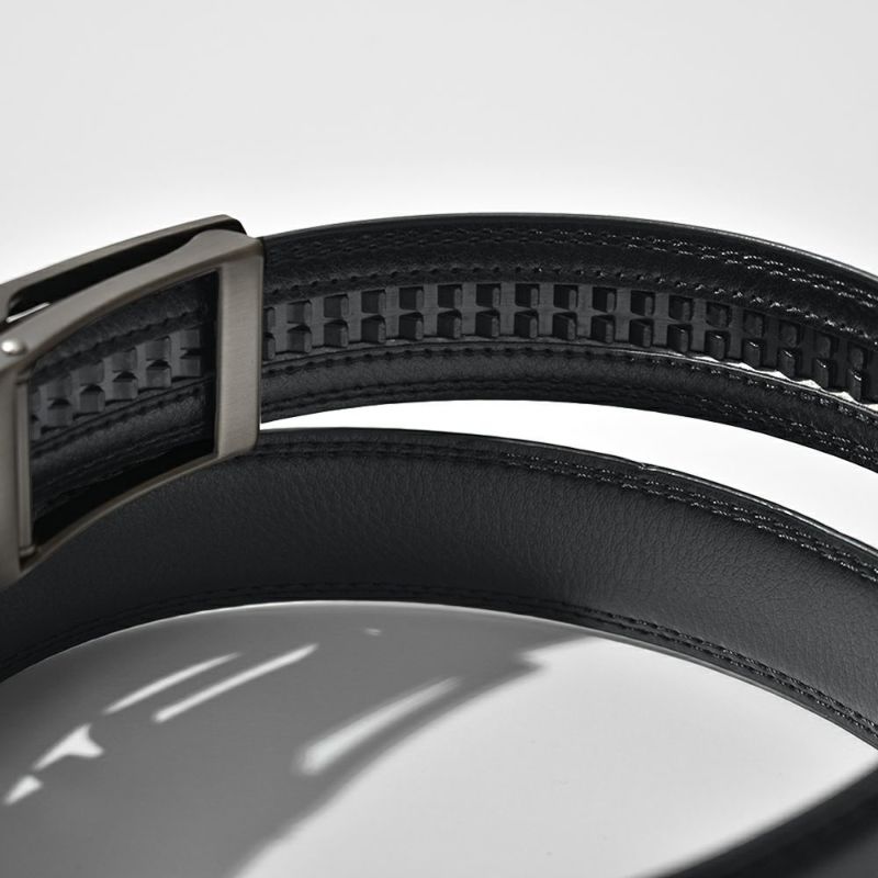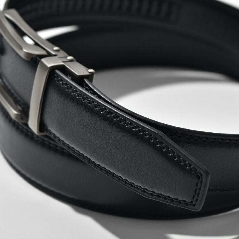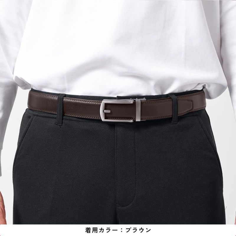 ベルト穴がなくスマートな印象を与え、本革のようにキチンと見えるベルト。