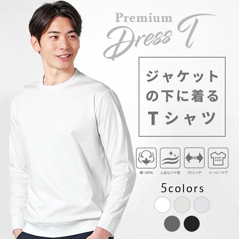 スマートさと上品さを兼ね備えた ジャケットのインナー専用 大人のドレス長袖Tシャツ