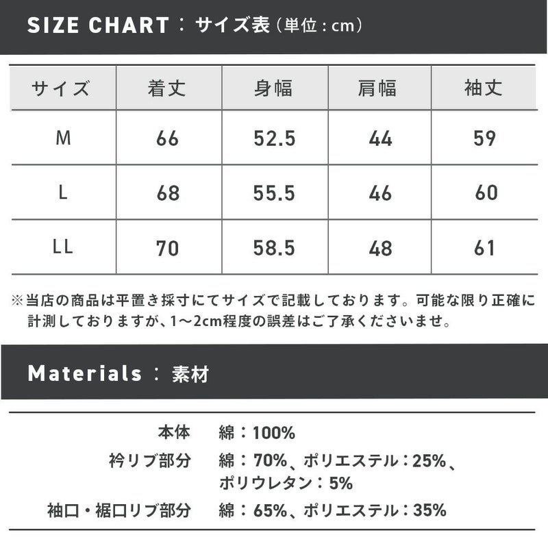 袖口・裾口リブ部分:綿65%,ポリエステル35%
