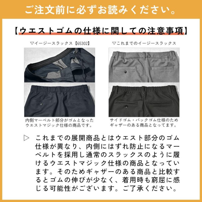 また、パンツのウエスト内側にはずれ防止になるマーベルトを採用し、ギャザーのないウエストゴム仕様になっているため見た目もきれいできちんと感があり通常のスラックスのように履くことができます。